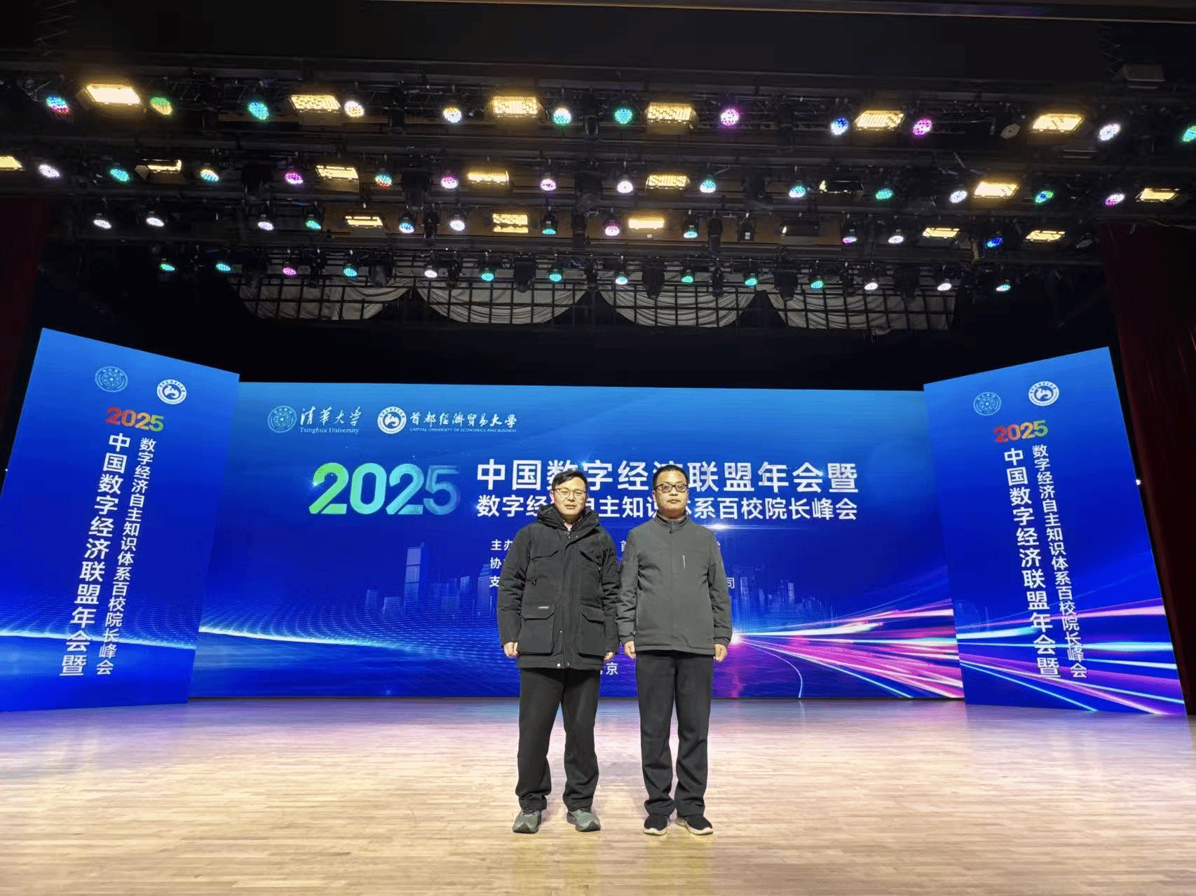 12月14日,商学院副院长梁广华,刘同超博士到首都经济贸易大学参加中国数字经济联盟2025年会暨数字经济自主知识体系百校院长峰会,聆听了中国科学院、清华大学、中南财经政法大学、南方科技大学等专家学者报告,并与参会专家进行了互动,探讨了数字经济建设方向。同时向中国数字经济联盟递交了加入申请。