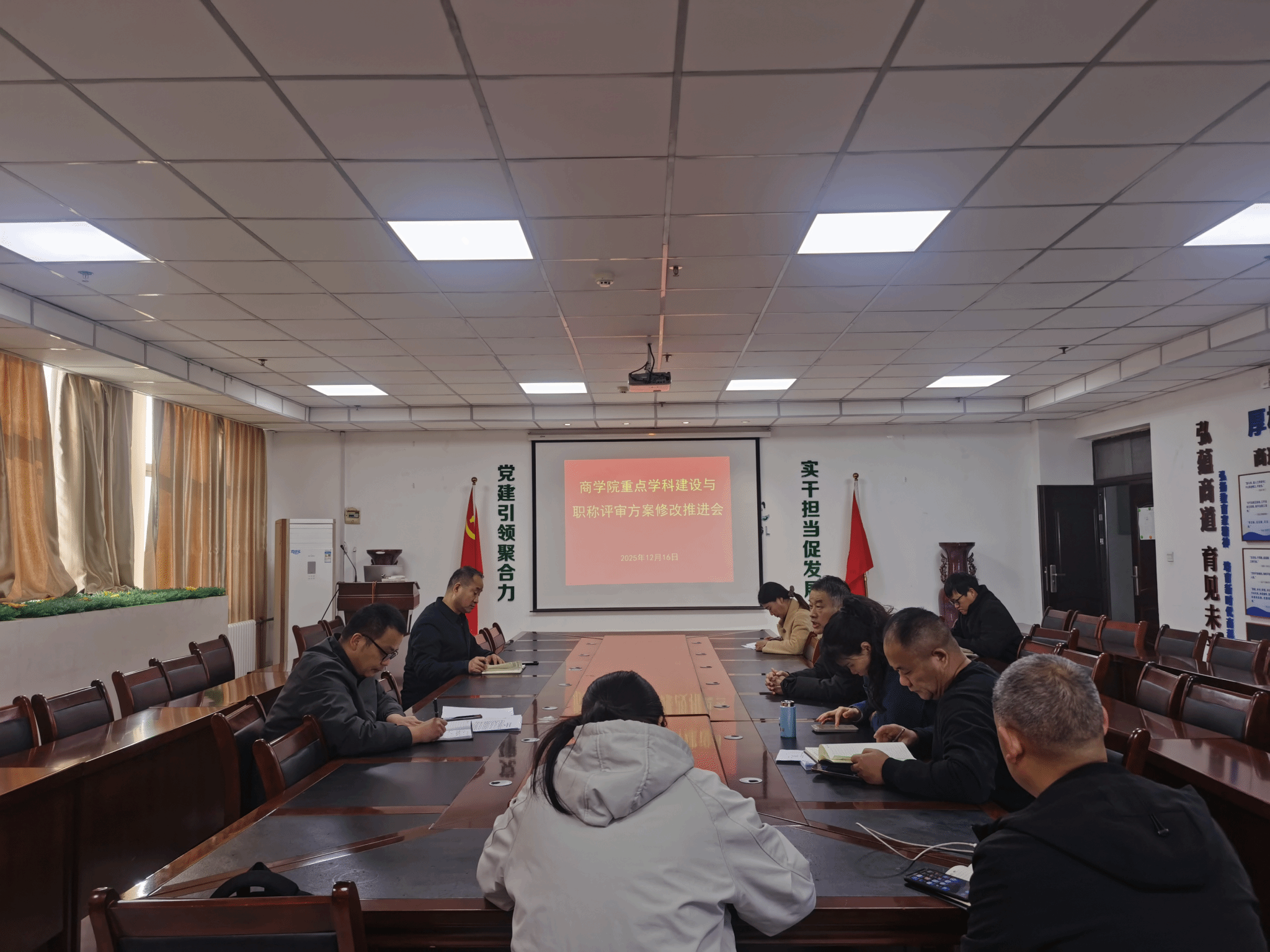 12月16日,商学院在1302召开重点学科建设与职称评审方案修改推进会,院长张新铭,重点学科带头人赵国党、靳思昌、刘晓丽,近两年有职称评审意向的教师代表参会,会议由副院长梁广华主持。重点学科带头人围绕数字经济重点学科建设取得的成绩和存在的问题进行讨论,重点检讨了硕士点申报短板,要求未来职称推荐积分细则中加入重点学科建设内容,引导教师围绕硕士点申报开展工作。