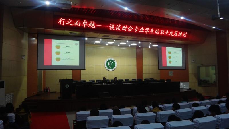 谭恒教授在学术报告厅为近400名师生作了题为《行之而卓越——谈谈财会专业学生的职业发展规划》的讲座。郭教授为师生们分享了在自己从事会计专业学习与实践的经历,分别从会计是什么样的职业、做什么样的会计和怎样成为行之而达的会计三个方面做了主题讲座。谭教授的讲座既有学术内涵,又有实践应用性,赢得了在座师生的一致好评。