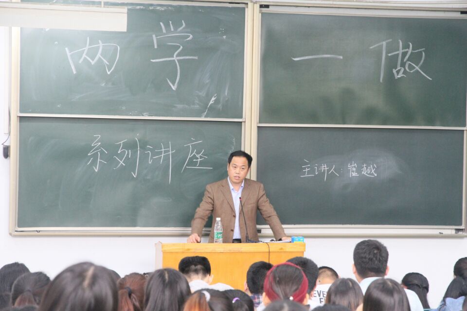 讲座开始首先由海书记讲话,海书记主要强调了会场的秩序和纪律,并希望同学们认真听讲,积极学习“两学一做”相关内容。随后崔越老师以风趣幽默的自我介绍开场,现场气氛轻松和谐。接着崔老师讲道:“两学一做”是今年党建工作的重中之重,不管是在现在的工作中还是在以后的工作中,接受这样的教育都是作为一名党员所必需的义务。”接着崔越老师又从以下三个方面为大家具体阐述了“两学一做”的内容:一是“两学一做”教育的背景和意义;二是学党规党章,要明确标准、树立规范;三是学系列讲话,强化理论武装、统一行动思想。崔越老师通过讲述我党的发展历程,使同学们深深感受到我党发展过程中的艰辛与不易。他强调党建工作从没有间断过,从严治党永远在路上。只有党员队伍合格,党组织才能坚强有力;只有党员队伍的先锋模范作用发挥出来,才能为社会发展做出更大贡献。讲座结束后,同学们纷纷表示自己受益良多。