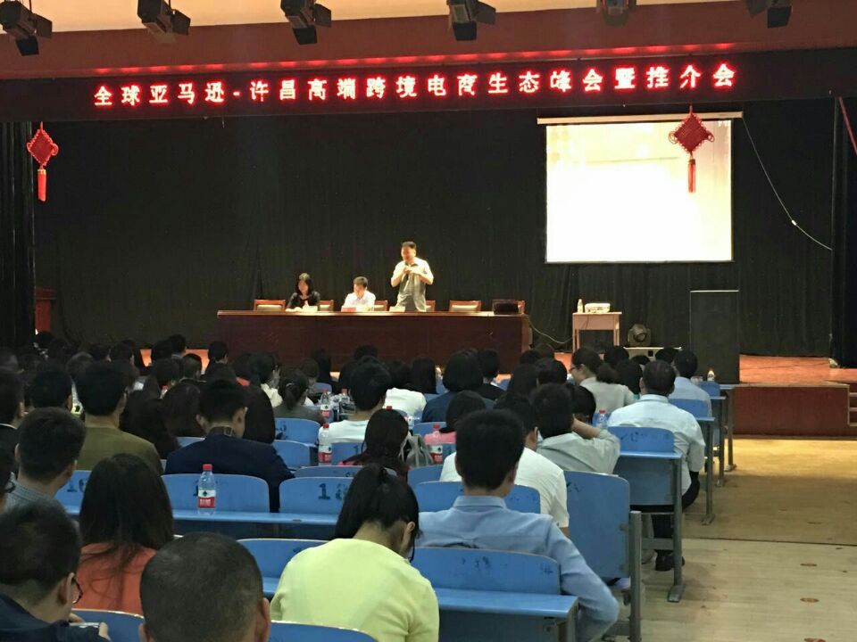 2016年5月5日上午9点,全球亚马逊-许昌跨境电商生态峰会暨推介会于我校大学生活动中心顺利召开。本次大会由许昌学院商学院承办,主要面向许昌市相关企业深度解读亚马逊企业入驻流程、运营解决方案等。此次大会与会嘉宾有许昌市商务局副局长赵峰等相关领导、亚马逊相关负责人及许昌地区的优秀企业代表等。商学院党总支书记沈春光参与大会并发表重要讲话。