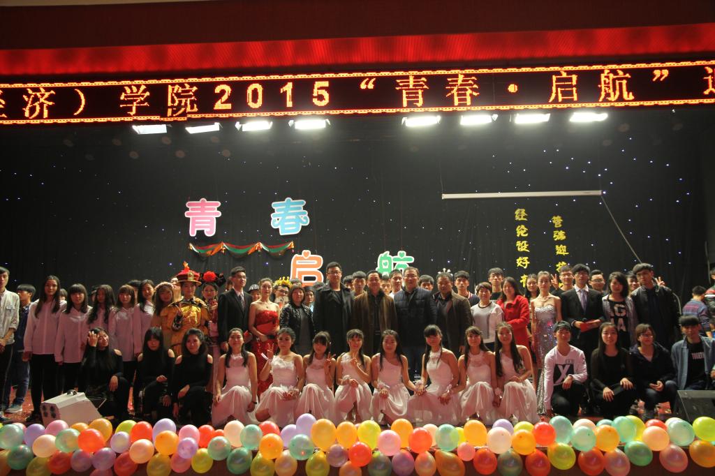 为迎接2015级新生的到来,展现我院学子风采,2015年12月9日下午6:30,许昌学院商学院在新餐厅四楼大学生活动中心举办了“青春·起航”迎新晚会。党总支书记沈春光,党总支副书记王宏伟,团总支书记王旭光以及辅导员丁媛媛,孔令玲,张志豪,秦聪应邀出席,商学院15级全体新生到场。