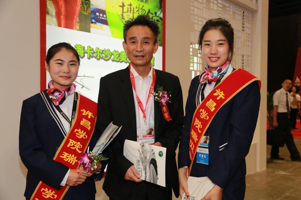 展会第一天,河南瑞贝卡集团发制品股份有限公司董事长郑有全亲临瑞贝卡学院展位参观指导,在听完同学们的讲解后,郑有全董事长欣慰的说:“这是咱们的学院!”,最后郑有全亲切地与同学们握手并合影留念。应主办方要求,瑞贝卡学院部分学生帮助布置了“中国轻工工艺进出口商会发制品分会第三届换届大会”会场,同学们认真细致的工作态度得到了会务组的肯定,给参与会议的企业负责人留下了良好的印象。