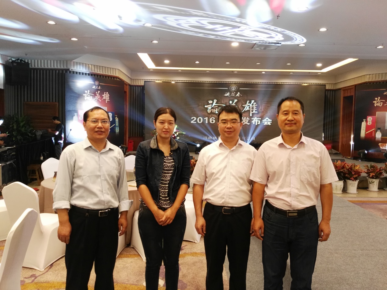 2016年9月25日,应姚花春酒业邀请,我校校地合作办主任郭超峰、商学院院长张新铭、营销与商务系主任钟和平等一行四人参加了在鄢陵花溪中州国际大酒店召开的姚花春“论英雄”系列新品发布会。河南省酒业协会、河南省各大媒体、当地县委、县政府相关领导及各合作单位均应邀参加了这一颇具意义的盛会。发布会以许昌三国文化为背景,详细介绍了姚花春酒业的资源优势、文化优势、产品特点和发展规划。会上,除了当地相关领导发表讲话之外,还邀请了我国知名书法艺术家张志和教授发表了感言。