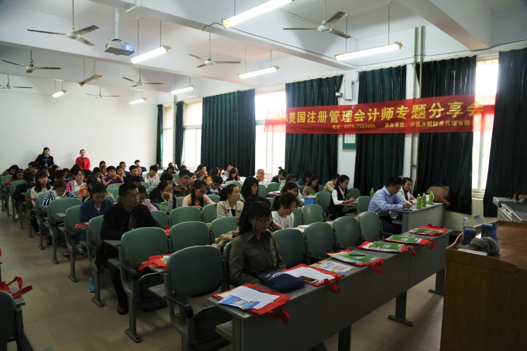 10月14号下午,由毕马威教育机构主办的CMA美国注册管理会计师专题分享会在我校东启智楼105教室举行。分享会由特邀嘉宾席永华,郑州毕马威教育创始人王玉,毕马威教育校长侯相恩教授等人对参加会议的15级工商管理(注册会计师方向),财务管理专业的同学进行了CMA的分享。