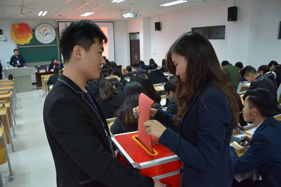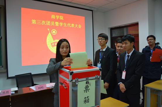 选举阶段,会议由大会执行主席张志豪同志主持,大会审议并通过了我院团委工作报告以及我院学生分会工作报告。接下来由 副秘书长时晴同学通过PPT演示的方式,向大家介绍各团委委员,学生会委员候选人的基本情况,随后与会代表对各位候选人以无记名投票的方式进行了民主选举。