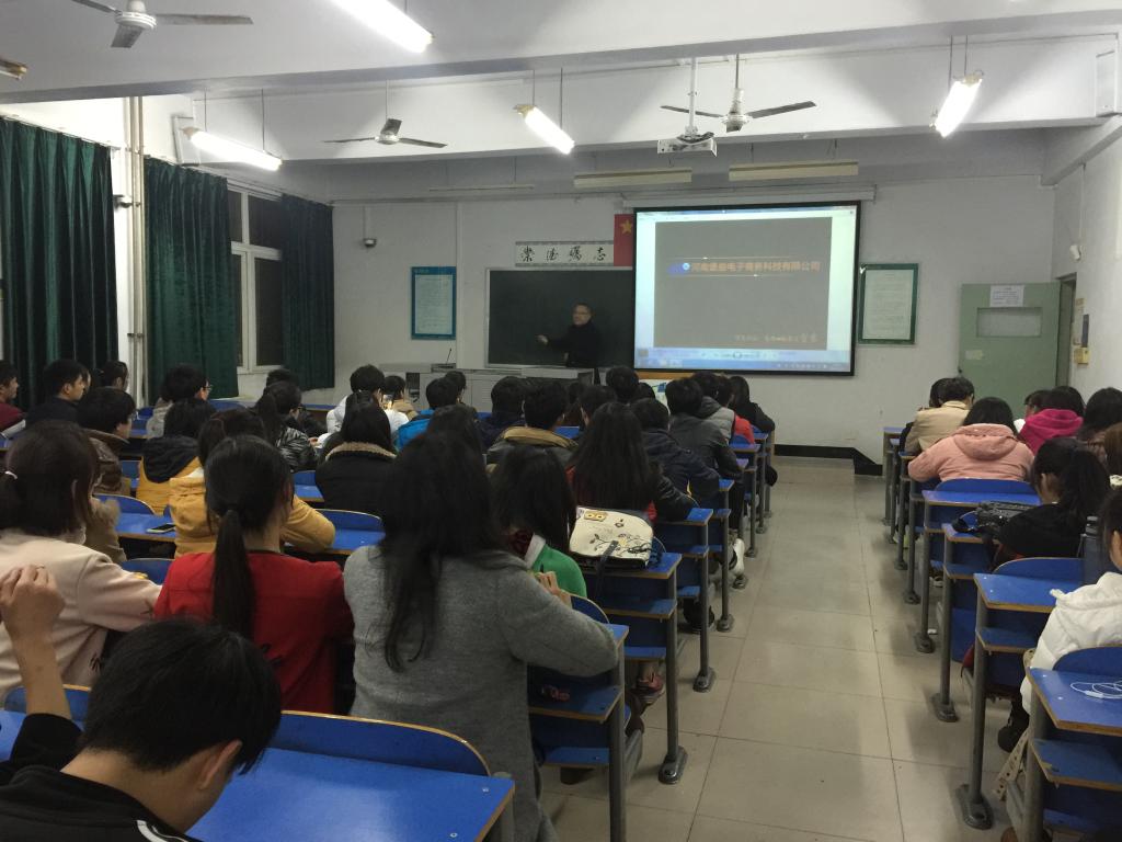 15级学生今年大二,对未来正充满期待,对于自己的专业知识还缺乏了解;14级学生今年大三,即将面临就业问题,正处于迷茫时期。吴总带来的演讲不仅扩大了学生们的知识面,而且减少了同学们对于就业的迷茫。在讲座开始之前,同学们就以热烈的掌声表示欢迎,对讲座内容充满期待。吴总演讲的主要内容为:一、吴总的创业历程,不忘初心、方得始终;二、对马化腾、马云、董明珠等商业领军人物的成功之道进行简要分析;三、对现在的电商市场与销售环境进行分析。四、介绍河南堡垒科技有限公司的商业模式。五、通过“穿越”的方式,让同学们懂得珍惜现在。