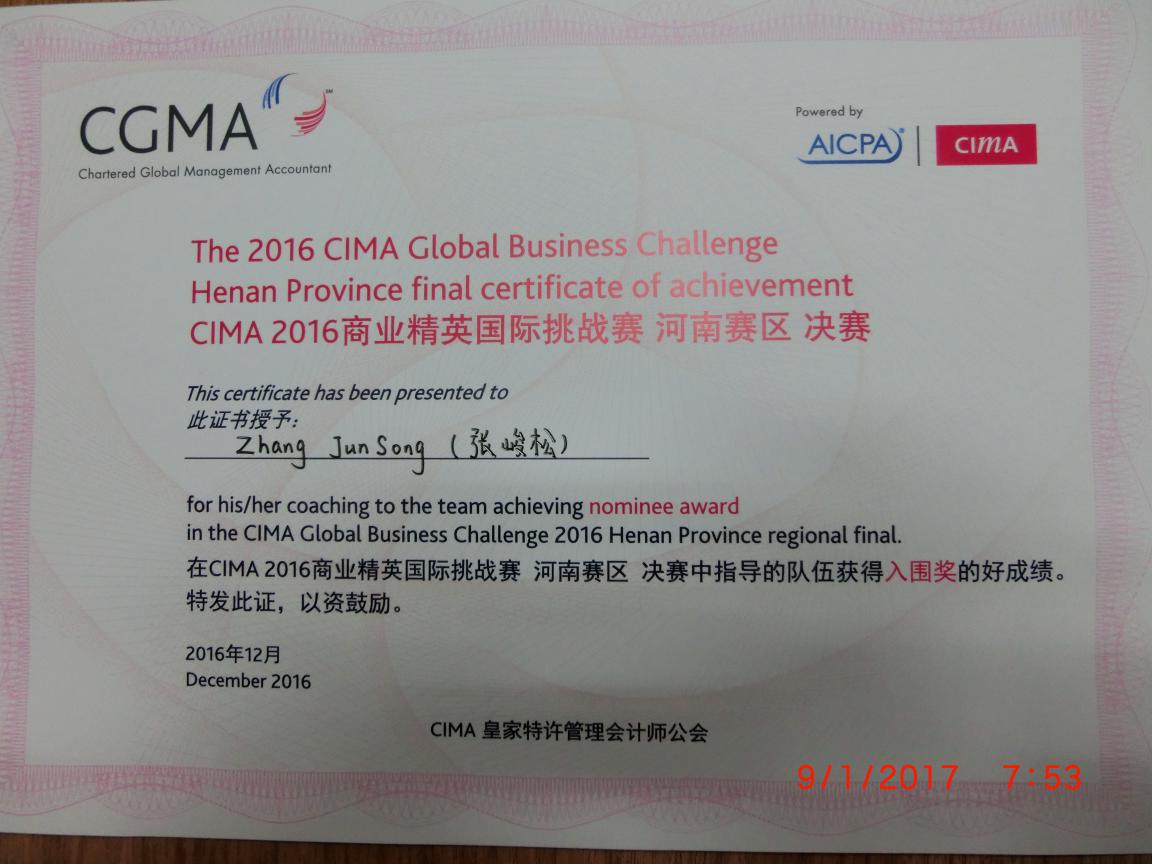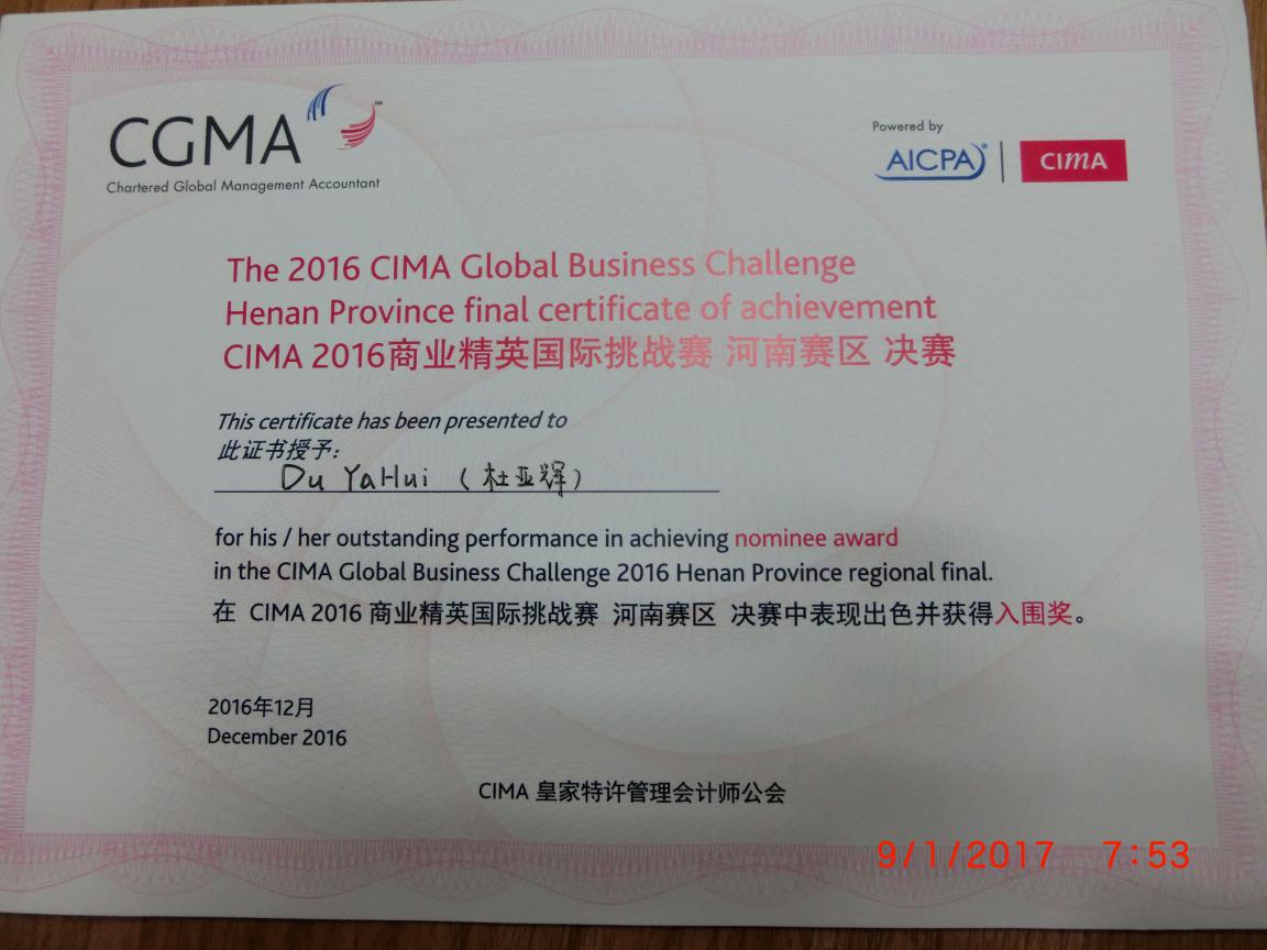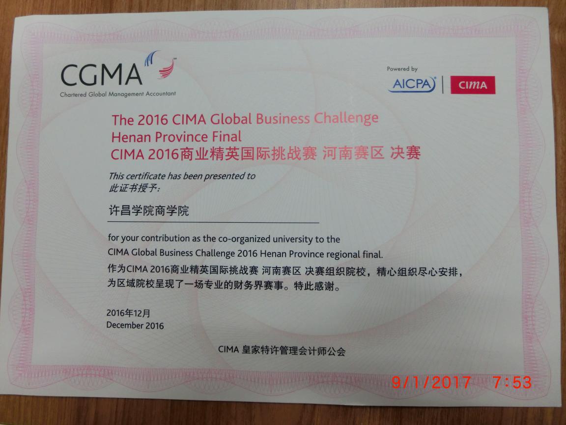 2016CIMA杯河南省商业精英挑战赛由CIMA皇家特许管理会计师公会主办,河南省农业大学承办,河南省财政厅、河南省总会计师协会管理会计工作委员会后援,面向全省大学生和研究生开放的商业案例分析竞赛项目。