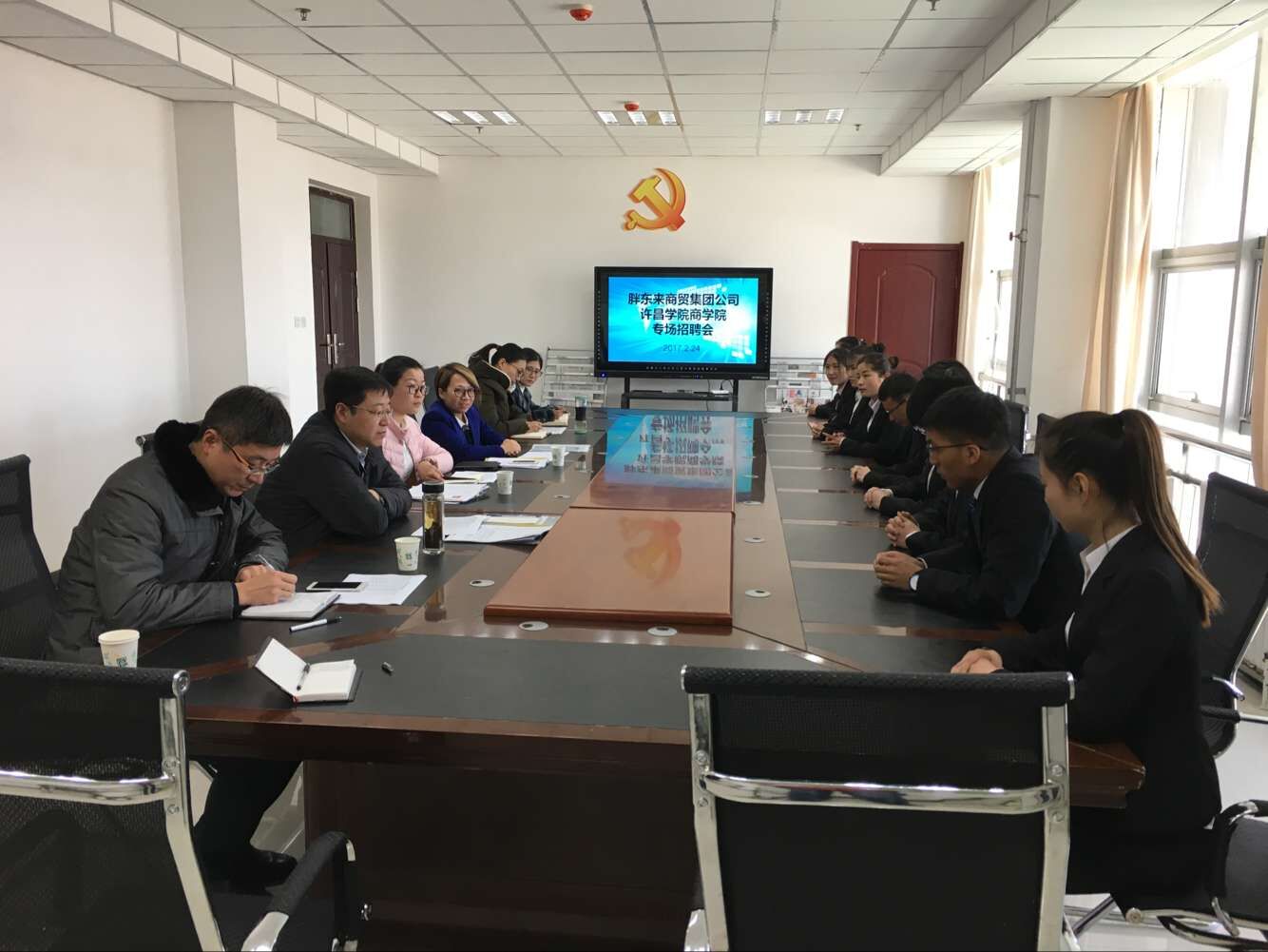 2017年2月21至24日,胖东来商贸集团公司针对我院13级毕业生在综合楼1323会议室开展校园招聘。我院党总支副书记海泳和13级辅导员白杨老师参加此次招聘会,13级毕业生共31人参加面试。