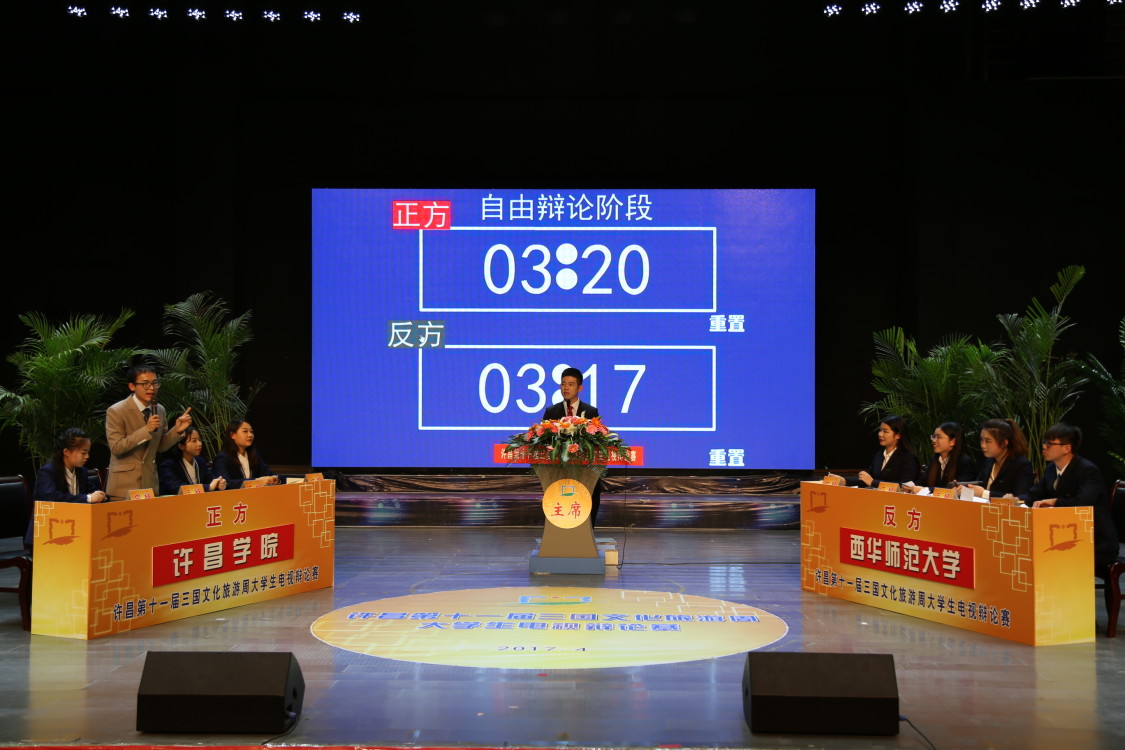2017年4月28日晚七时三十分,由许昌市委市人民政府主办,许昌学院承办的许昌市第十一届三国文化旅游周大学生电视辩论赛半决赛、决赛于许昌市广播电视台演艺大厅举行。我院13级樊润豪、14级黄世超、15级王星文和16级郭培培四名同学凭借扎实的辩论功底代表我校参加此次大赛。