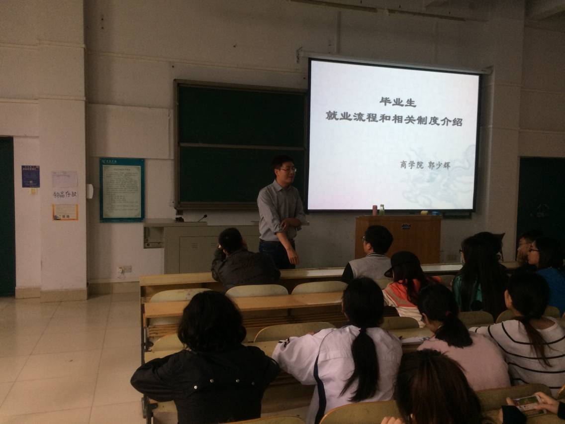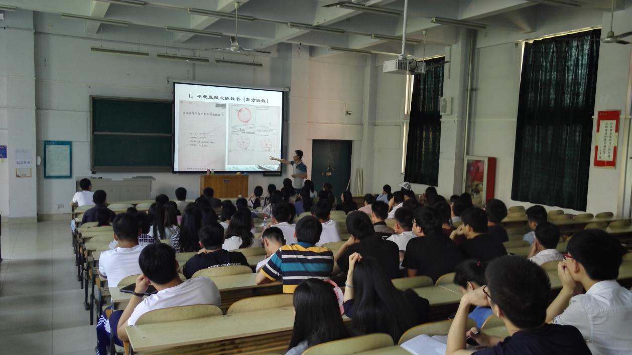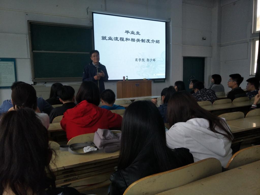 为进一步推动商学院的就业指导工作,帮助毕业生了解毕业流程、熟悉就业政策、转变就业观念、增强择业意识,促进毕业生充分就业。5月16日、17日两天,在B合五教室举办了三场就业流程和政策系列讲座。讲座由我院就业专干郭少辉老师主讲, 2017届毕业生参加了讲座。