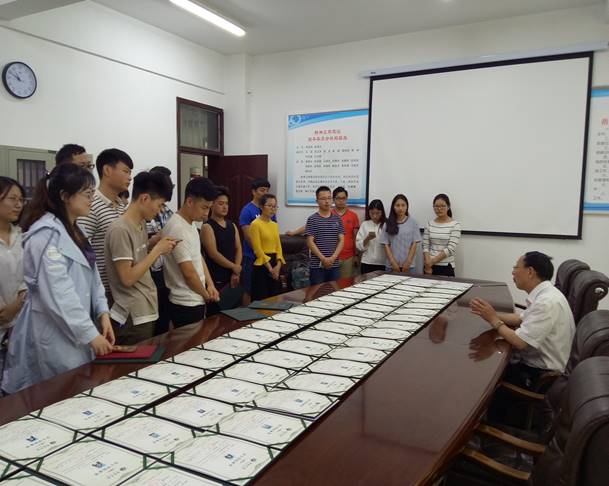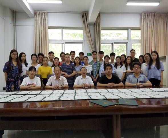2017年6月9日(星期五)上午十一时在许昌学院教务处大会议室举行了商学院第一批修读双学位教育(注)的55名学生辅修学位证书颁发仪式。校教务处周颖杰处长、商学院双学位办公室负责人张峻松老师及双学位教育学生数十名参加了辅修管理学学士学位证书的颁发。