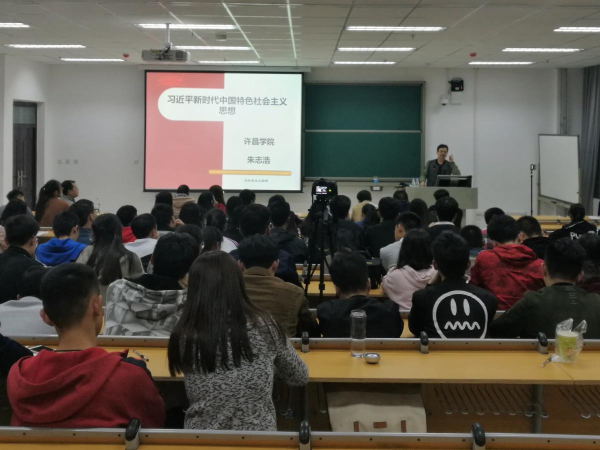 会上,朱志浩博士首先深刻阐述了“习近平新时代中国特色社会主义思想”的具体内涵,要求同学们深刻领会这一重要思想的历史地位、精神实质和丰富内涵,充分认识党的十九大把习近平新时代中国特色社会主义思想确立为党必须长期坚持的指导思想的重大政治意义、理论意义、实践意义和深远历史意义。紧接着,朱老师以我党老一代革命家不屈不挠,艰苦卓绝地建立革命军队,28年的艰苦奋斗打下了一个新中国,以及改革开放的伟大历史事件,为同学们分析了我党能够屹立不倒的原因——中国共产党人的初心和使命;点明了“新时代标明新方位,新征程提出新任务”的观点,通过十八大十九大的分析对比,阐明了分两步走全面建设社会主义现代化国家的奋斗目标。最后,朱志浩博士对此次学习内容进行了总结,并对同学们给予高度期望,希望同学们能以党的十九大精神为指引,以永不懈怠的精神状态和一往无前的奋斗姿态创造无愧于新时代的新成绩。