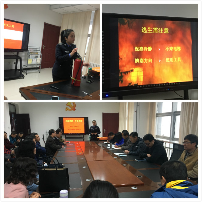 起火后逃生时能不能往上跑?用湿毛巾捂口鼻有用吗?灭火器如何使用……这些问题在本月17日河南省消防协会刘雅楠教官为我院全体教职工进行的消防安全知识培训中一一得到了解答。商学院党政领导、全体教职工50余人参加了此次培训会。