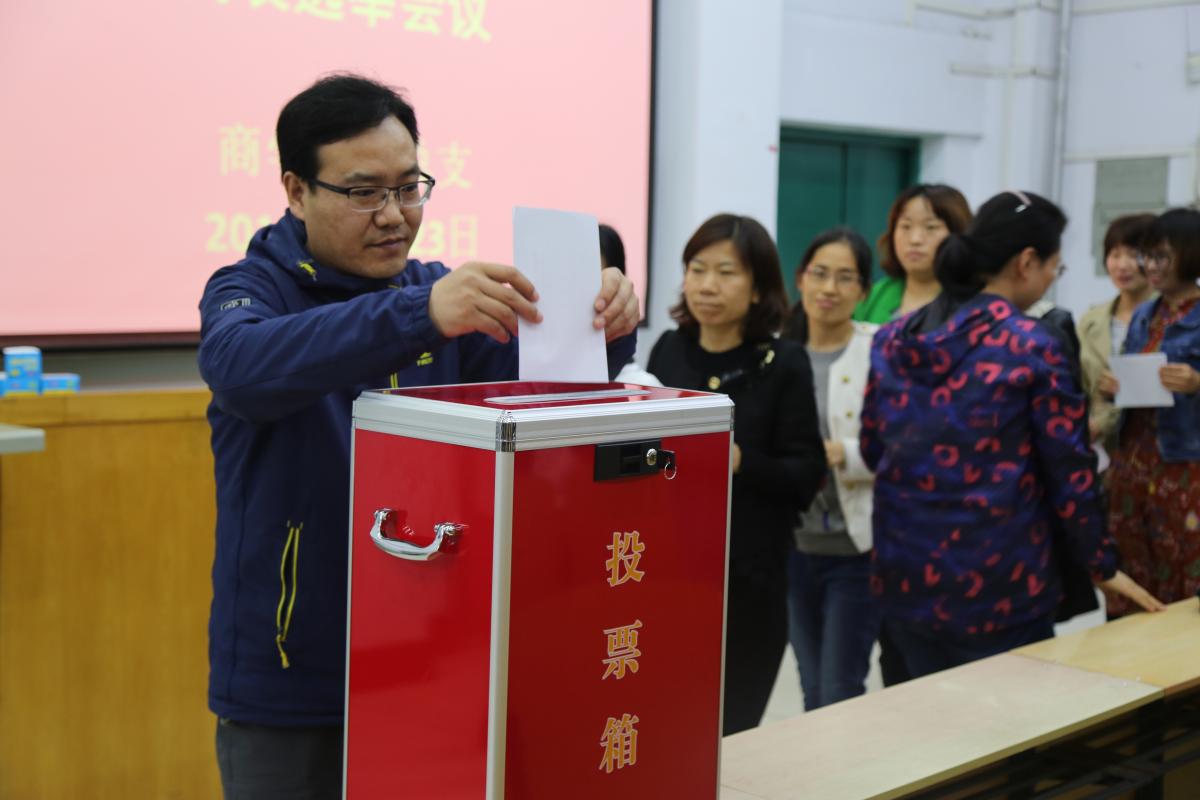 大会伊始,由海泳同志介绍大会人员到场情况,符合法定人数,可以开始会议。此次党代会代表选举严格按照《关于召开中共许昌学院第二次代表大会的通知》的具体要求,通过基层党支部民主选举、校党委资格审核等环节,斟酌再三,严格审核产生了赵正风、沈春光、张新铭、海泳、张晓丽、安书芳6名代表候选人。随后,由海泳同志简单地介绍了一下6名候选人的个人简介及工作经历。紧接着,我院党总支书记沈春光进行发言,他指出“:十九大召开以来,一直是我们党统领高校发展,高校党代会是中国共产党建设的重要组成部分,它反映最广大党员的意愿,有利于我们党更好地统领我们学校的发展,希望每一位党员代表积极献言献策,各投票代表要本着公平、公正、公开的原则行使属于自己的神圣投票权。”接下来由工作人员分发选票、投票代表们仔细斟酌候选人选,审慎理性,走到投票箱前投下神圣的一票。最后由张志豪、李铮两位同志进行计票,海泳同志公布选举结果:赵正风、沈春光、张新铭、海泳、张晓丽5名同志作为商学院党员代表参加中共许昌学院第二次代表大会。至此,本次大会圆满结束。