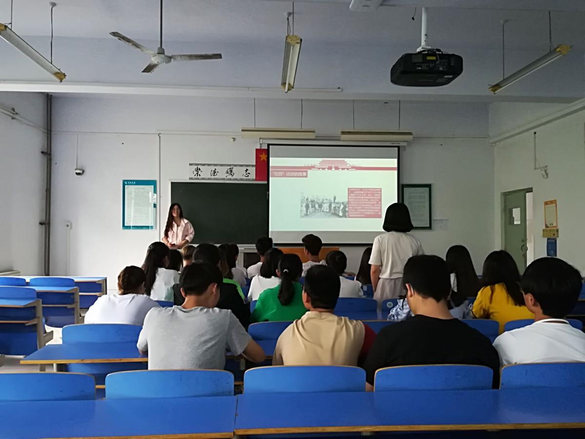 活动上,各班级团支书通过PPT的形式,为同学们介绍了五四青年节的由来和五四运动的具体经过,并让同学们进行交流讨论,发表自己对“五四精神”的见解以及作为青年一代的大学生应当怎样学习和发扬“五四精神”。在此过程中,同学们积极发言,以青年人富有创新的独特视角,提出了颇多极具思想的看法。随后,各班级团支书为同学们播放影片《厉害了,我的国》,通过观看这部震撼人心的影片,使同学们了解到了国家目前处在发展前沿的新型技术,以及在创新、协调、绿色、开放、共享的新发展理念下,中国取得的历史性成就的同时,亦使同学们进一步认识到作为青年一代,自身所肩负的责任与使命。