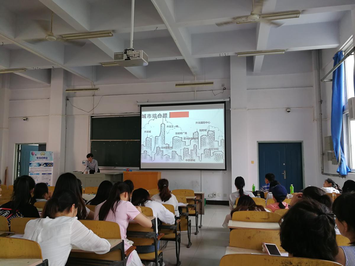 为了更好的做好15级学生的毕业实习工作,我院于 5月18日至21日举办了五场毕业实习宣讲会,受邀企业有:北京位来job、北京金信华纳、北京中企世博、北京链家、碧桂园、恒达、海底捞、百度锐之旗等18家公司,我院15级560名学生参加本次宣讲会。
