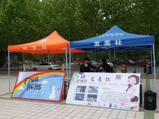 第一阶段,蒙脸拥抱陌生人活动中,大家怀着给陌生人一个拥抱,传递微笑,分享快乐的态度积极参与,尽情释放压力。下午在A2连廊举行了假发试戴活动,此次假发全部来自于瑞贝卡公司,由瑞贝卡的负责人为同学们试戴假发,参与此次活动的大约有百余人。在负责人的指导下,同学们都积极尝试新的假发,感叹着假发的美丽,个性。同学们在戴完假发以后都表示,本次活动的召开可以帮助她们看到一个不一样的自己,进行不同形象的转换。