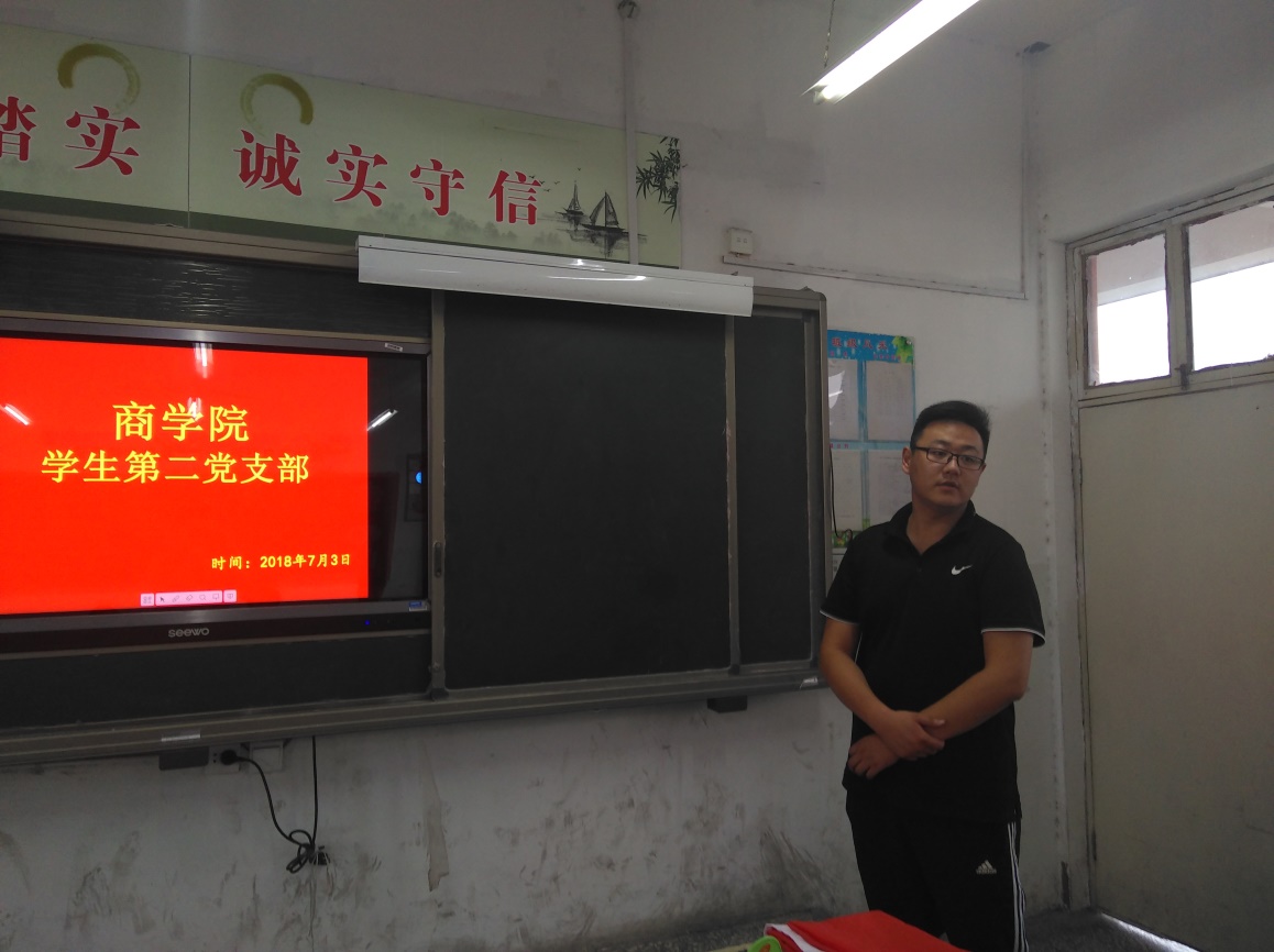 为响应学校关于“七一”期间认真组织开展“不忘初心、牢记使命”的主题党日活动的要求,商学院第二党支部于7月5日在艾庄中学教室结合精准扶贫调研开展了本次团日活动,本次会议由团总支书记张志豪老师主持召开,实践队全体成员参与其中。