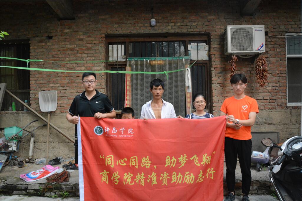 为深入落实国家、省市及学校资助帮扶政策, 帮助建档立卡贫困家庭学生解决生活难题,加强学院与学生家庭的联系和沟通,了解商学院贫困学生的家庭状况,2018年7月7日,商学院团总支书记张志豪老师,辅导员马艺嘉老师带领学生代表袁同辉,叶望春一行四人赴平顶山,漯河及许昌周边县区,对部分商学院建档立卡贫困学生家庭进行了走访慰问,给学生家庭送去了慰问品。