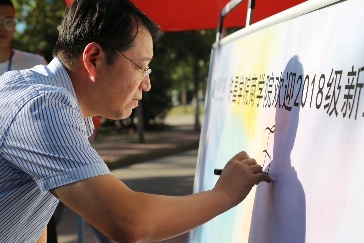 为加强与新生的交流互动,我院还举办了新生留言签名墙特色活动。海泳副书记亲自写下寄语“from now,励精图治;for future,大展宏图”,以此来对18级新生表示一种欢迎及祝愿。新生们纷纷签下自己的名字,写下自己的感言,许下与许院的第一约。希望小尾巴们可以在自己未来的大学四年生活中书写自己的辉煌。