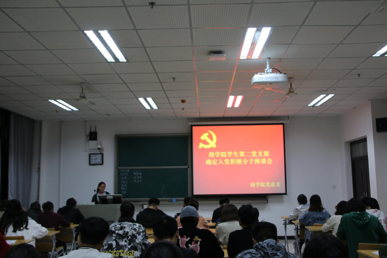 2018年10月22日晚上6点30分,商学院学生第二党支部确定入党积极分子座谈会在文综楼610教室召开。学生第二党支部书记张志豪及该支部成员到场参加了会议。