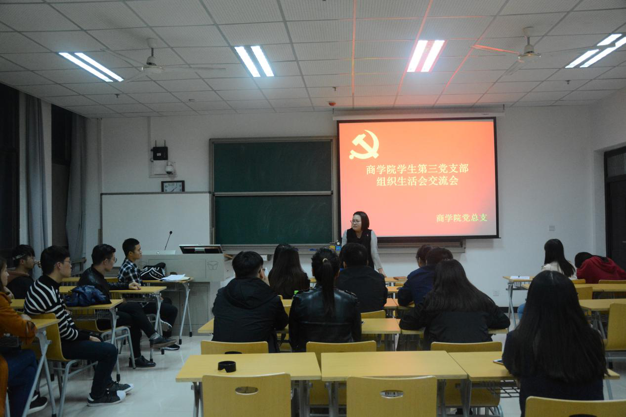 为进一步加强党员们的思想道德修养,促进党支部成员交流思想,总结交流经验。10月23日晚上六点半,商学院学生第三党支部组织生活会交流会在文综楼614教室如期举行,共有党员和预备党员22人参加。会议由学生第三党支部助理贾庆霞主持,学生第三党支部书记李铮老师出席了本次会议。