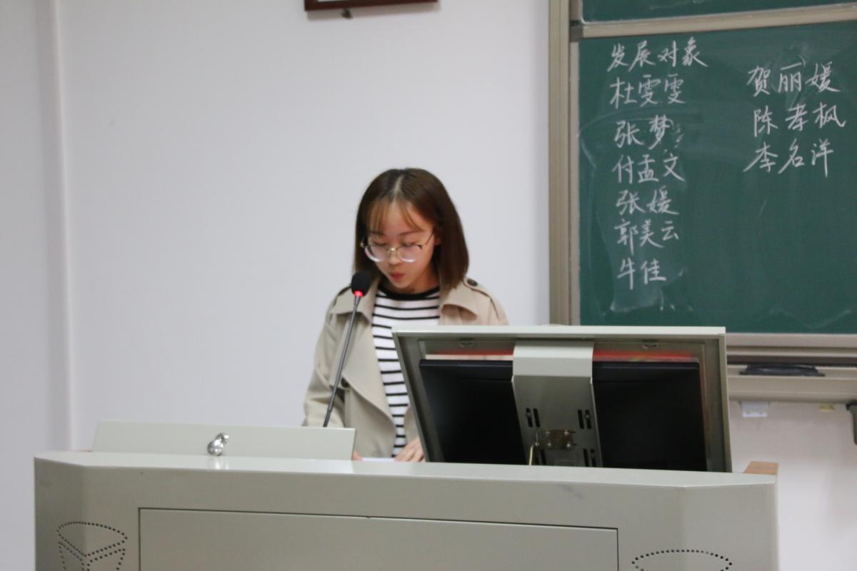会议开始前,参加会议的成员依次签到入场。在核实本次会议无缺席成员后,团总支书记张志豪老师首先向即将成为入党积极分子的同学表示祝贺,并对他们进行鼓励,希望他们要不断前行, 争取早日成为中国共产党党员。 随后,在张志豪老师的主持下,参会人员在肃静的环境下全体起立庄严地共唱国歌。随后,入党申请人上台进行1~3分钟的表述,主要是近期思想汇报。他们慷慨激昂,满怀热情的表达着想要成为一名优秀共产党党员的意愿。为尽早加入共产党,他们做足了准备。期间与会人员认真的聆听着他们的表达。大会在一片掌声中进入尾声。最后,在与会同志的举手表决后,同意接收入党申请人转为入党积极分子。会议在大家的热烈鼓掌中圆满结束。