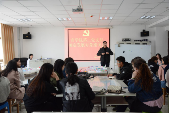 3月29日中午,商学院学生第二党支部全体成员在文综楼1015教室举行了学生第二党支部确定发展对象座谈会,第二党支部书记张志豪老师参加了本次会议。