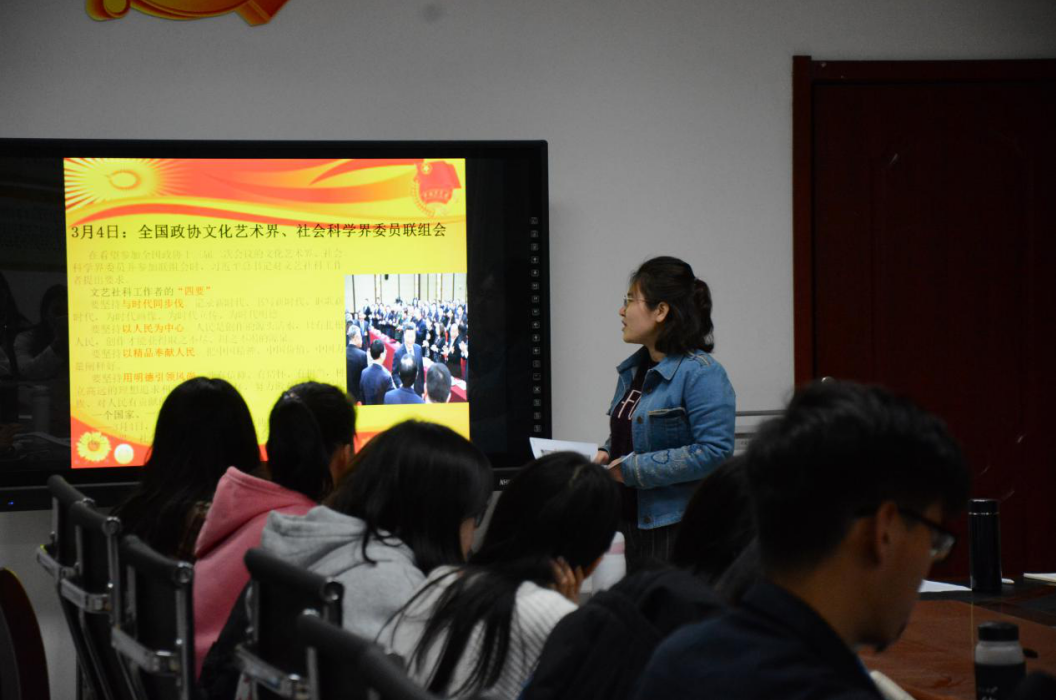 3月31日晚上7点整,第三十三期业余团校培训成员在文综楼1323教室接受主题为“聚焦两会”的培训,培训主讲人为马艺嘉老师。