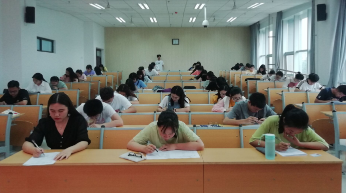 本次考核以考试形式呈现,商学院团总支学生会组织部负责监考任务。考核伊始,组织部的同学核实签到情况,并依次收取入党积极分子的党课笔记。随后,组织部部长王雨欣分别在两个教室说明强调本次考试的考场纪律,同时组织干事收取入党积极分子手机,分发试卷。考生们在收到试卷之后便奋笔疾书,全神贯注,带着一份对党的热情,将之前党课所学知识内容学以致用,用最好的语言在试卷上表达对党的向往。考试期间,没有一次出现交头接耳、左顾右盼的情况,整场考试在安静、肃穆的气氛中度过。