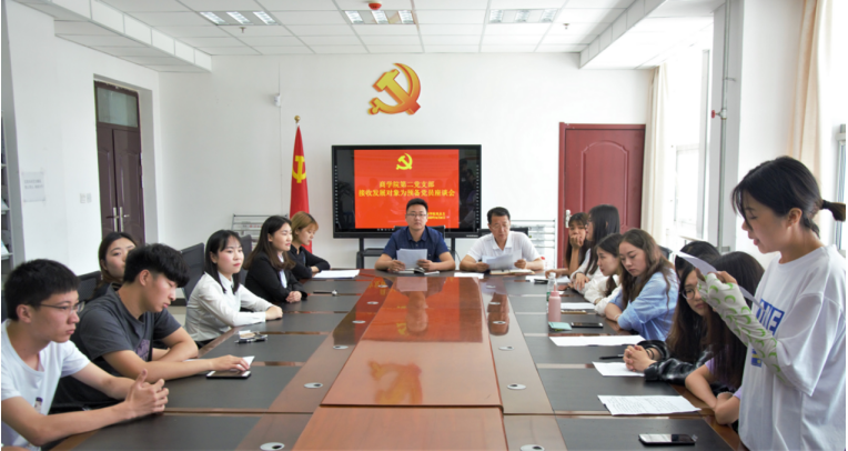 2019年6月8日中午一点三十分,商学院第二党支部在文综楼1323教室召开接收发展对象为预备党员座谈会,我院党总支副书记海泳和团总支书记张志豪参加了本次座谈会。