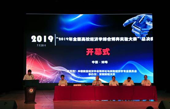 7月19-21日,由中国数量经济学会博弈论与实验经济学专业委员会主办,安徽财经大学承办,成都杰科力科技有限公司协办的2019年全国高校经济学综合博弈实验大赛总决赛顺利进行。中国数量经济学会博弈论与实验经济学专业委员会理事长、中国社科院博士生导师王国成教授、中国数量经济学会博弈论与实验经济学专业委员会副理事长兼秘书长葛新权教授、安徽财经大学党委常委副校长周加来教授和程刚教授、教务处和经济学院相关负责人出席开闭幕式。