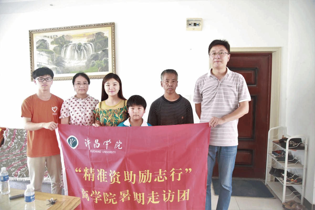 精准资助励志行,认真负责到个人。2019年7月6日,许昌学院商学院指导老师李盼盼老师、郭少辉老师、沈鹤立老师带领精准资助励志行走访团团员深入贫困学生家中,开展走访入户调研活动,了解贫困学生家庭情况与具体困难。
