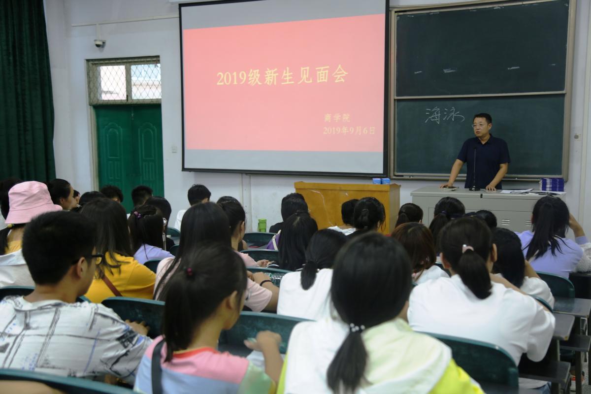 为让2019级新生更适应大学生活,2019年9月6日晚上6点10分,商学院于A合十七、A合十八两个教室举行新生见面会。党总支副书记海泳、团总支负责人武梦夏、19级新生辅导员尚小税以及19级全部新生参与此次见面会。