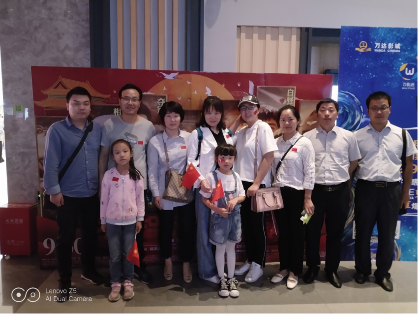 为庆祝新中国成立七十周年,进一步激发支部党员的爱党爱国热情,2019年9月30日18:40,商学院教工第一党支部开展“不忘初心、牢记使命”主题党日活动,组织支部党员老师到万达广场观看爱国教育影片《我和我的祖国》。