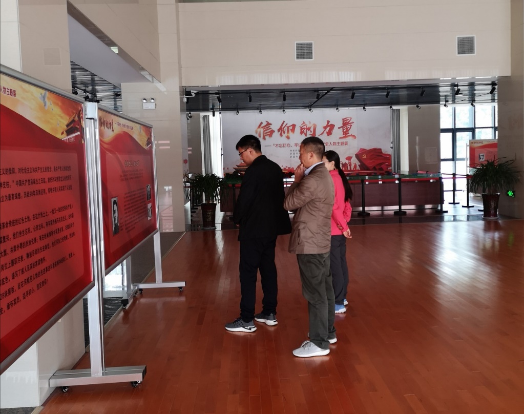 在许昌革命烈士纪念碑前,全体党员在烈士纪念碑前驻足默哀,祭奠缅怀在民族解放和建设事业中英勇牺牲的英烈们,并在烈士陵园纪念广场庄严宣誓,重温入党誓词,汲取精神力量,重沐信仰之光。在革命烈士纪念馆内,党员们参观了“信仰的力量——许昌党史人物主题展”,追忆峥嵘岁月,纪念馆内每一幅图片资料,都详细记载了许昌地区在革命时期的辉煌历史、英雄儿女在战争中抛头颅洒热血的感人事迹。通过参观纪念馆,全体党员深刻地感受了革命英雄前赴后继、敢于牺牲的大无畏精神。