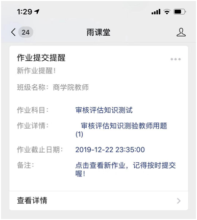 通过雨课堂在全院范围发布“审核评估知识测验题目”