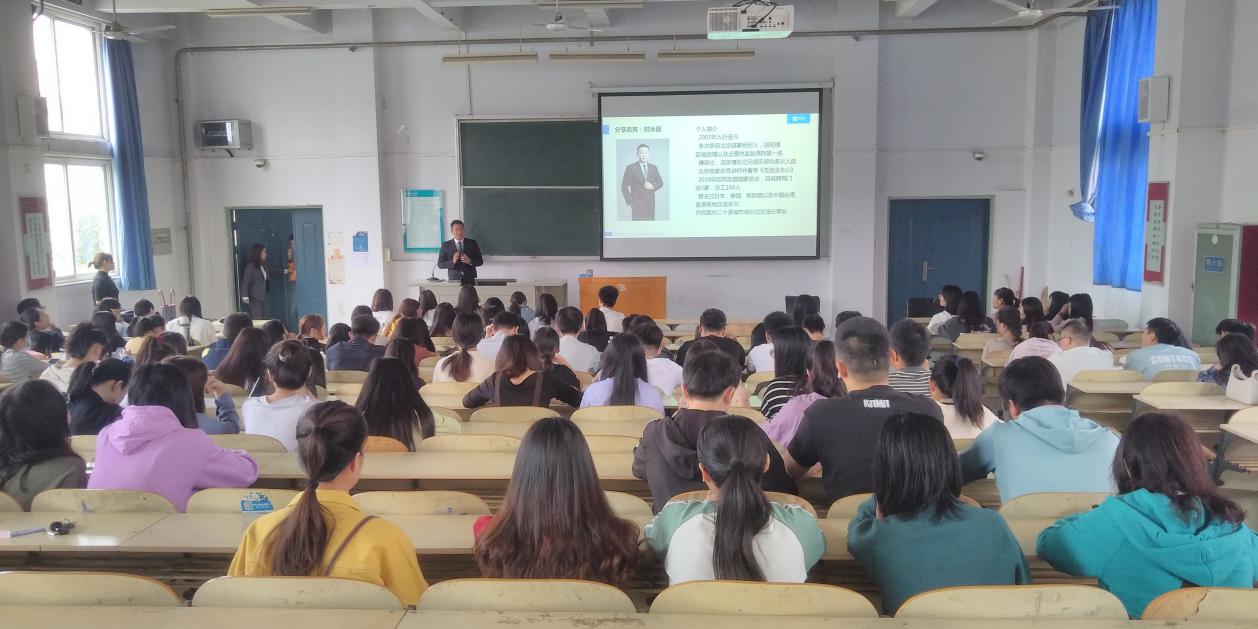 第二场宣讲会由“河南众信”公司的周经理为大家讲解,他和同学们积极互动,结合今年的经济形势,分析了多个行业的市场现状。他说:“有破产倒闭的企业,就有逆势发展的企业。”接着,他介绍了“河南众信”的发展历程和业务范围,并告诉同学们:越是在经济下行的时候,不良资产处置公司就会发展得越好。最后,他希望同学们能够找到一个施展自己才华的舞台,挖掘出同学们的潜力。