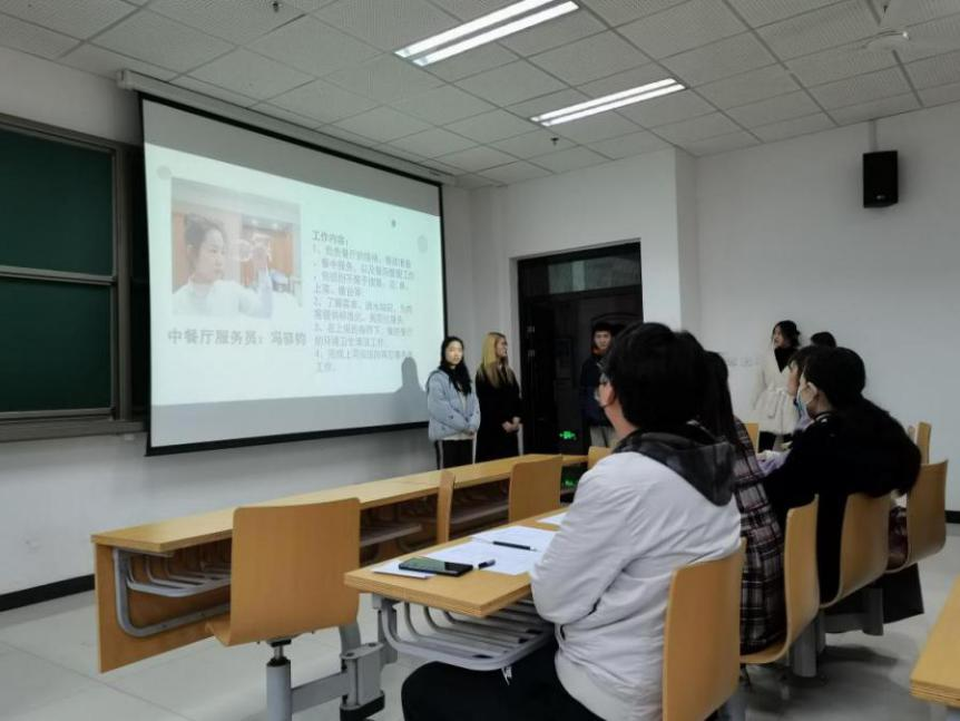 老师依据实习地区分布及酒店类型不同,将实习汇报划分为三组在三个教室同时展开。每个小组都准备充分,汇报就实习酒店介绍、组员实习岗位、实习工作内容、实习心得体会及实习建议反馈等方面进行详细生动阐述,展示五个半月丰富的实习成果。并且每组还分享了在实习中遇到的有趣经历及难题,同时也精心制作了视频以便深入了解小组实习过程中的难忘瞬间,现场气氛十分融洽。