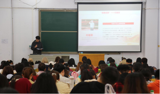 孟嘉祥以“人民心中的英雄”为题,向同学们介绍了执着的翻译家宋书声先生,他在自己的申请书里写下:“党为我找到了出路,如果没有党,还不知道,我今天又在何处。党就是我的家,让我感到更大的力量。”宋老先生一生只做一件事的毅力,让我们心生敬佩。还有“80后”村医贺星龙、盖买村“女当家”李元敏等他们的优秀事迹,从这些榜样身上看到了他们为人民、为党做出的贡献。潘珍珍同学以“党的历史永远辉煌”为题,带领同学们学习了党的光荣奋斗史。金杨扬同学以“为什么要加入中国共产党”为题,重温入党誓词,明确入党初心。张艳杰同学以“走好入党第一步”为题,阐述了正确的理想信念对一个人的重要性以及必要性。王东明同学以“新时代爱国主义教育实施纲要”为题,呼吁同学们要厚植爱国主义情怀,勇担时代重任。这些优秀的学生党员从不同角度带领同学们回顾了优秀党员光荣的艰辛岁月,让广大学生感悟今天生活的幸福,鞭策大学生努力学习奋斗,增强大学生的爱国热情和振兴祖国的责任感和使命感,对党员和学员们均有重大的教育意义。