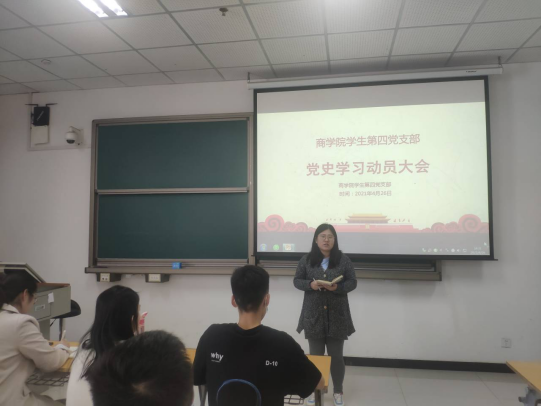 学生第一党支部:商学院学生第一党支部定期开展线下党史自学,党支部成员近两周学习内容为“习近平主席在党史学习教育动员大会上的讲话”,“学习标兵”上交了心得体会。