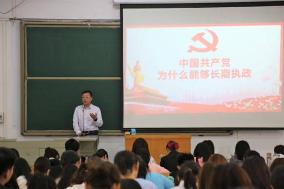 海书记以《强信仰、忠于党》为题,从理论的坚定性和信仰的坚定性、不谋私利,生根于人民之中、勇于自我革命,善于自我修正、把政治规矩摆在前面,坚持集中统一领导四个方面,带领同学们学习了中国共产党为什么能够长期执政的真谛。课堂上,同学们踊跃发言,谈谈自己的信仰和理想,现场气氛活跃,效果良好。最后,海书记提到,中国共产党能够长期执政的原因在于共产党是为民族、为人民谋利益的政党,是彻底地为人民的利益工作的,生根于人民之中,勇于自我革命,善于自我修正。而这些伟大的精神品质也正是入党积极分子所需要学习的地方,要树立正确的积极的入党观,方能走的更高走得更远。