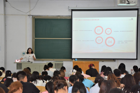 5月9号上午,院团委书记谭芳丽在A合八为入党积极分子上党课,共200余名入党积极分子参加学习。