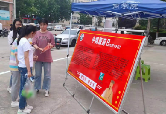 志愿者们结合党史学习教育,以“学习百年党史,畅游红色圣地,走进革命摇篮”为主题,向师生介绍“5.19中国旅游日”的由来、设立的意义和中国旅游日标志的创意内涵,推介河南红色旅游精品线路,精美的展板、海报,专业、热情的讲解吸引大量师生驻足咨询。
