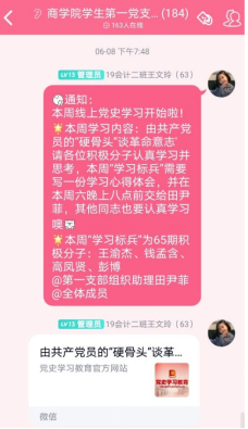 学生第一党支部:定期开展线下党史自学,党支部成员近两周学习内容为“由共产党员的“硬骨头”谈革命意志并思考”,“学习标兵”上交了心得体会。