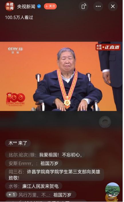 王续渊同学在收看直播后很是激动,被29名“七一勋章”获得者的事迹深深感动。他说:“作为一名退伍返校大学生,在以后学习及生活中,要厚植家国情怀和民族担当,做一名有责任有追求、心中有理想、脚下有力量的新时代青年,延续军人优良传统,为同学们做好表率。”