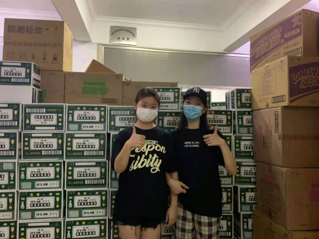 彭家琪、冉皓两位同学分别居住在郑州市管城回族区和中原区,在看到班级群里转发的河南共青团动员的通知后,积极填写报名表,在报名成功后,当天下午就配合上级的安排前往附近的社区参加物资的发放,主要工作就是分发、搬运物资。