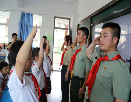 百年征程波澜壮阔,百年初心历久弥坚。为庆祝中国共产党建党100周年,引领广大学生继承和弘扬党的光辉传统和优良作风,商学院大学生士兵先锋连党史宣讲“退伍不褪色,绿色颂党恩”社会实践队于2021年7月4日走进健康路小学开展党史宣讲活动。