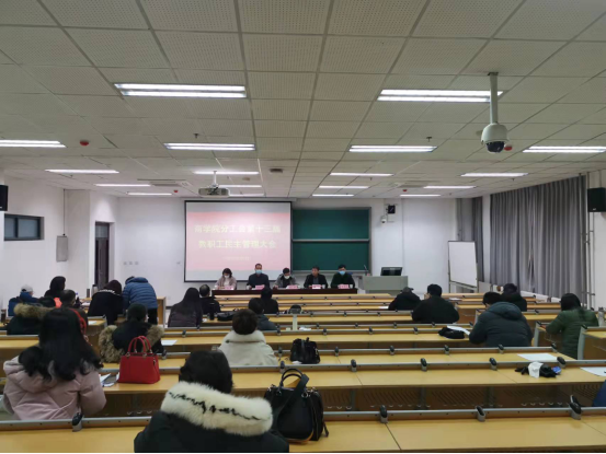 为严格落实疫情防控工作的要求,防止大量人员聚集,且要保证大会的顺利召开,1月5日上午,我院在文综楼109和108教室同时召开2021年度教职工民主管理大会。院领导班子和全体教职工参加了本次会议,会议由院党委书记翟广辉主持。